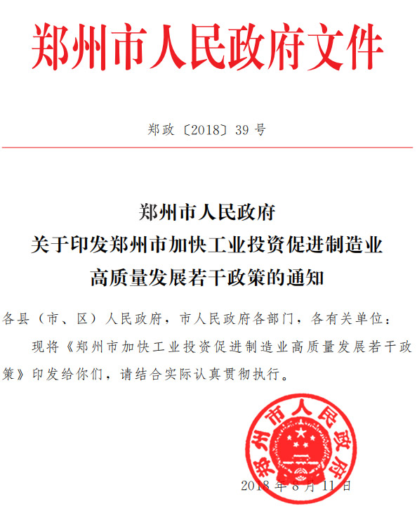 政府在不斷督導(dǎo)企業(yè)進行改造升級的過程,也在不斷為企業(yè)考慮,出臺補貼政策。8月份,鄭州市出臺了加快工業(yè)投資促進制造業(yè)高質(zhì)量發(fā)展若干政策
