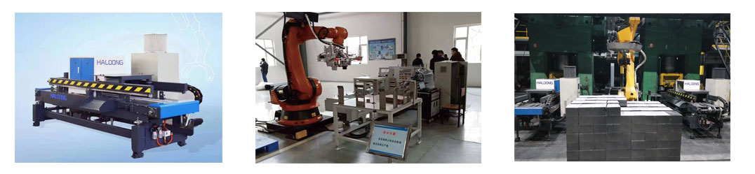 根據制品形狀尺寸設計專用夾具,采用機器人取磚碼垛工作效率高,動作精準統一,24小時工作無疲勞。(機器人選型根據負載和使用要求來選型)
